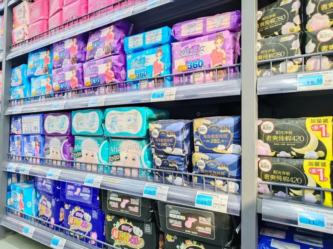 ▲2024年11月22日,江蘇宿遷,市區一家超市貨架上的衛生巾 圖據視覺中國